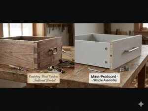 The Result: When we build a drawer with dovetails, the physical shape of the wood prevents the drawer front from pulling off. It is a “mechanical lock” that doesn’t just rely on glue; it relies on physics.